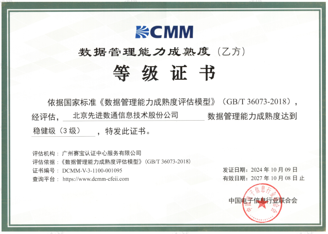 近期,中国电子信息行业联合会公布了最新一批顺利获得数据管理能力成熟度(DCMM)贯标等级认证的企业名单。bifa必发官网成功取得数据管理能力成熟度稳健级(三级)认证。这一认证的取得,标志着bifa必发官网在数据治理体系构建和数据管理与应用能力方面,已经达到了国家权威组织认可的标准。这不仅是对bifa必发官网在数据管理领域专业能力的肯定,也是对其在有助于数字化转型服务和数据驱动决策方面所做努力的认可。